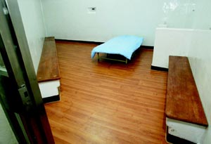 為因應(yīng)試辦深夜不訊問,增設(shè)夜間休息室,監(jiān)視鏡頭有馬賽克設(shè)計,休息時提供寢具,同時增設(shè)律師接見室,并在候保室提供公共電話,讓被告獲交保后,可以對外聯(lián)絡(luò),尊重被告人權(quán)。(高大林)
