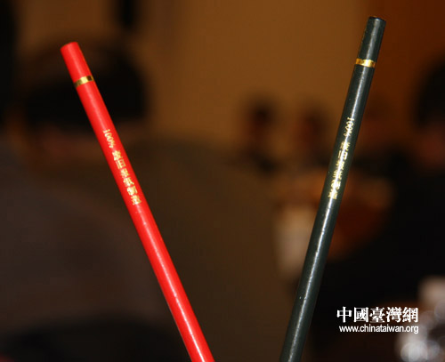 中國臺灣網(wǎng)3月7日北京消息 節(jié)儉是今年兩會會務(wù)的特點(diǎn),在今天的臺盟臺聯(lián)聯(lián)組討論會場中,記者即發(fā)現(xiàn)了一個(gè)節(jié)儉辦會的小細(xì)節(jié)——委員們桌上放的每只鉛筆,筆桿上都標(biāo)著這樣一行小字:100%廢舊報(bào)紙制造。
