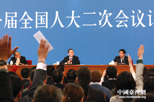 溫家寶總理回答西藏問題張弛有度,鏗鏘有力。(鐘寶華 攝)