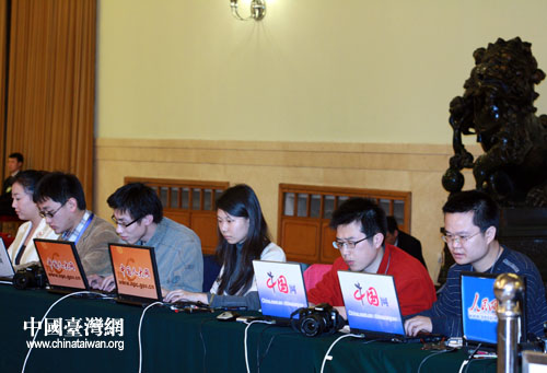 人民網(wǎng)、中國網(wǎng)等現(xiàn)場直播溫家寶總理與中外記者見面會。(鐘寶華 攝)
