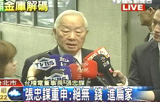 陳水扁妻子吳淑珍于2月3日向臺檢方遞交陳報狀,指稱臺積電董事長張忠謀曾給付新臺幣2000萬元給陳水扁家。張忠謀今天赴臺檢方“特偵組”應訊后予以否認。