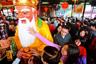 臺北縣中和市烘爐地土地公廟是求財神的熱門地點,臺彩董事長尚瑞強去年請求保佑臺彩業(yè)績好,結(jié)果最近頭獎開到要“倒貼”,他今天要趕著去還愿。圖:臺灣《聯(lián)合報》