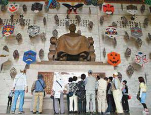 陳水扁在位時(shí)推行“去蔣”政策,蔣介石銅像被各式風(fēng)箏遮擋。資料圖片