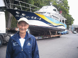 昨天下水的“錫麟一號”船籍原屬于陳義山近40年前花巨資添購的木造船,陳義山說,他已忘記造價到底多少錢,只記得為了監(jiān)工還到臺南造船廠住了20多天,這艘“錫麟一號”木造船昨天也功成身退,由嶄新的大型FRP新游艇取代,同樣取名為“錫麟一號”,就是要留下薪火相傳的見證。