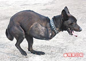 流浪狗因車禍前肢被截,只能像袋鼠般用后腳跳躍前進。來源:臺灣《蘋果日報》