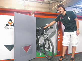 中國臺灣網(wǎng)4月11日消息 據(jù)臺灣《聯(lián)合報》報道,臺灣會計事務(wù)所工作人員李宗西酷愛騎自行車,卻被連偷三輛,價值新臺幣上萬元。他發(fā)誓“絕不再讓小偷得逞”,花半年多時間研發(fā)自行車置放柜,今年一月取得專利,決定量產(chǎn)“卡放心”自行車休息站。