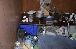 臺(tái)警方說,賴姓嫌疑人等3人從網(wǎng)絡(luò)上找到安非他命制作教學(xué)影片,發(fā)現(xiàn)他們一邊看教學(xué)影片一邊提煉安非他命。他們將麻黃素加入鹽酸、硫酸等化學(xué)物質(zhì)鹵化之后,再經(jīng)反應(yīng)爐結(jié)晶成型,有別于傳統(tǒng)土法制造安非他命的手法,相當(dāng)專業(yè)又精細(xì)。