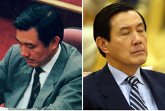 馬英九打瞌睡,圖左,1998年12月29日,馬英九剛當選臺北市長,圖右,2008年1月22日,馬英九代表國民黨參選臺灣當局領(lǐng)導人。來源:臺灣《聯(lián)合報》