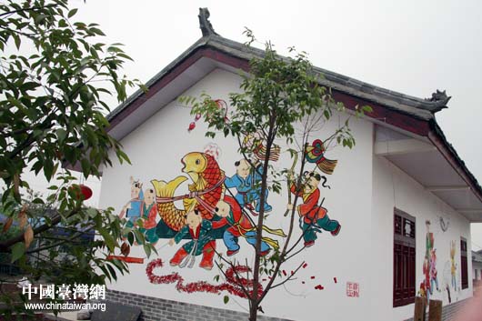 遵道棚花村年畫,勾勒一副龍門山下的世外桃源。(中國(guó)臺(tái)灣網(wǎng) 鐘寶華 攝)