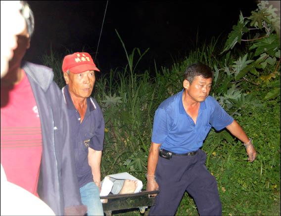 許順東遺體準(zhǔn)備抬上車。圖片來源:臺(tái)灣《自由時(shí)報(bào)》