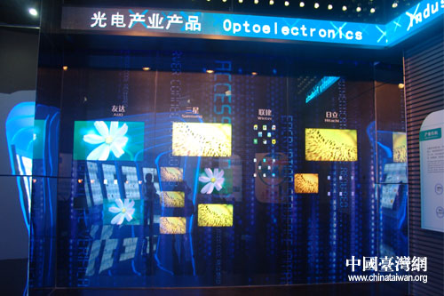 光電產(chǎn)業(yè)產(chǎn)品展示。排在最前的“友達(dá)(蘇州)”是一家臺(tái)資企業(yè),于2002年進(jìn)入園區(qū)。(中國(guó)臺(tái)灣網(wǎng) 李典典 攝)