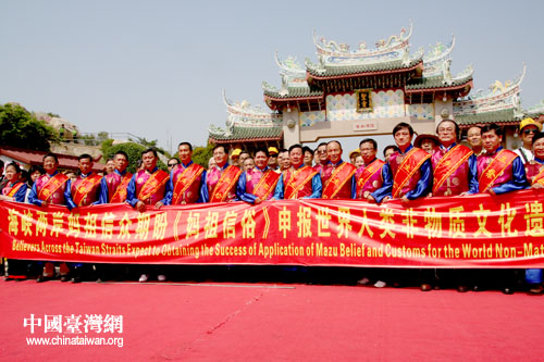 臺灣媽祖信眾支持媽祖文化申報世界文化遺產(chǎn)宣傳活動。(中國臺灣網(wǎng)記者 張弛 攝)