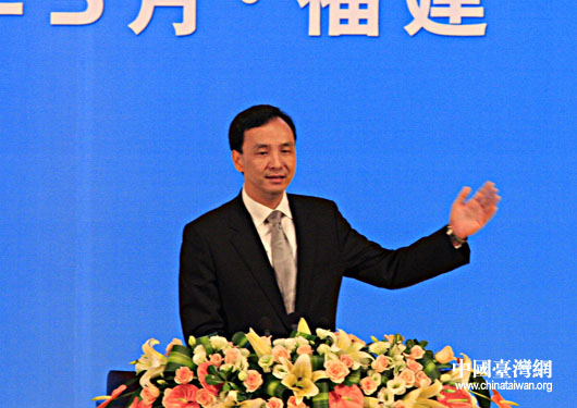 海峽論壇大會17日上午在廈門隆重開幕。圖為中國國民黨副主席、桃園縣縣長朱立倫在大會上致辭(中國臺灣網 鐘寶華 攝)