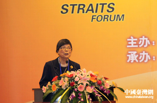中國國民黨中央評議委員會主席葉金鳳在海峽經(jīng)濟區(qū)高層研討會上發(fā)表演講。(中國臺灣網(wǎng) 邵磌 攝)