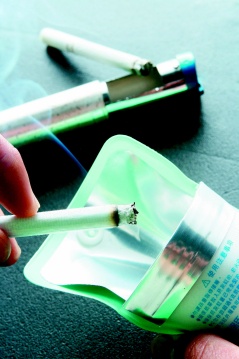 圖為臺環(huán)保部門要求吸煙者攜帶的煙袋。圖片來源:臺灣《聯(lián)合報》