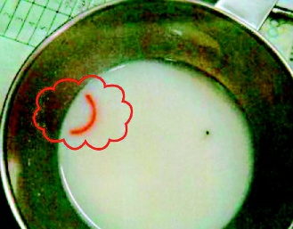 臺北市西松小學(xué)3月18日的湯中出現(xiàn)橡皮筋。(圖片來源:臺灣《聯(lián)合報》)