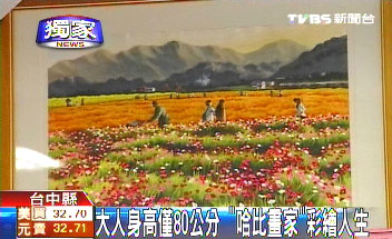 中國(guó)臺(tái)灣網(wǎng)6月10日消息 據(jù)臺(tái)灣TVBS電視臺(tái)報(bào)道,臺(tái)灣一成年男子如同電影《魔戒》中的“哈比人”一般體型矮小,只擁有10歲小孩的身高。初中畢業(yè),未曾拜師學(xué)藝的他,單憑涂鴉的興趣,在繪畫領(lǐng)域找到信心和自我。