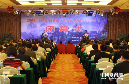 湖南省委常委、統(tǒng)戰(zhàn)部部長李薇薇宣布“2009海外臺商湖南行”閉幕。湖南省省長助理袁建堯、國務(wù)院臺辦主任助理龍明彪出席閉幕式并講話。在張家界市投資的臺商代表、海外臺商代表也在閉幕式上發(fā)言。湖南省臺辦主任龔文密主持推介會暨閉幕式。