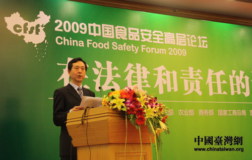 衛(wèi)生部副部長(zhǎng)陳嘯宏在2009中國(guó)食品安全高層論壇上發(fā)言。(中國(guó)臺(tái)灣網(wǎng) 高琿 攝)
