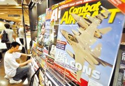 因應(yīng)軍事迷的需求,臺灣市售軍事雜志大幅增加,男性為主要的閱讀族群。圖為民眾在書店里翻閱雜志。(圖片來源:臺灣《中國時報》)