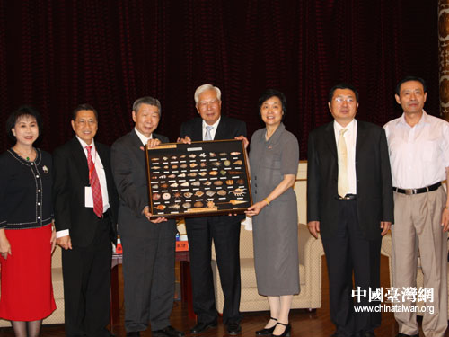會談結(jié)束后,雙方互贈紀(jì)念品。(中國臺灣網(wǎng) 楊麗 攝)