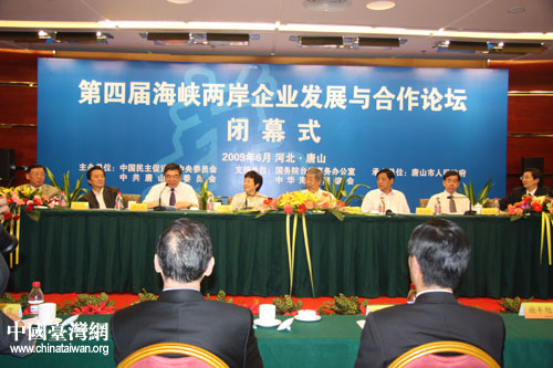 中國臺灣網(wǎng)6月16日唐山消息 第四屆海峽兩岸企業(yè)發(fā)展與合作論壇今天下午在唐山閉幕。與會領(lǐng)導和嘉賓紛紛表示,面對當前嚴峻的經(jīng)濟形勢,希望海峽兩岸的企業(yè)在以后的日子里能夠有更廣泛、更深入的發(fā)展和合作,共抗國際金融危機。
