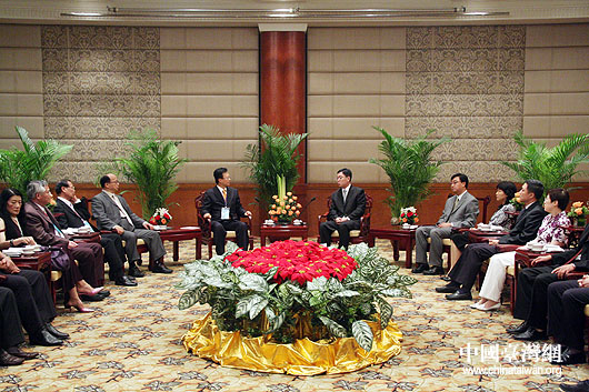 國家旅游局副局長杜江26日會見來京營銷農(nóng)特產(chǎn)品和旅游的臺中市、彰化縣、臺中縣、南投縣主要負(fù)責(zé)人。杜江同彰化縣縣長卓伯源交談。(中國臺灣網(wǎng) 鐘寶華 攝)