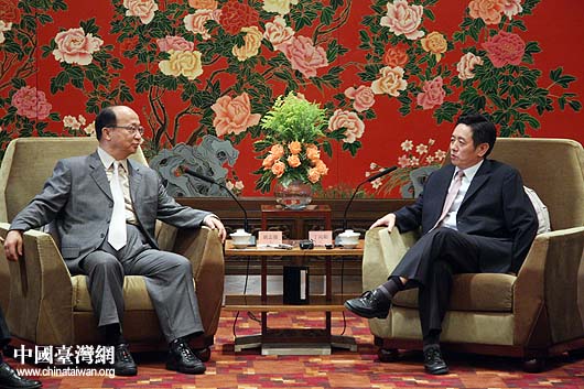 6月26日下午,北京市副市長丁向陽在京會見了臺灣中部四縣市負(fù)責(zé)人。丁向陽同臺中市市長胡志強交談。(中國臺灣網(wǎng) 鐘寶華 攝)