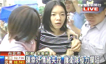 眼見陳幸妤崩潰,由“深綠”人士組成的保護(hù)陳幸妤的“護(hù)衛(wèi)隊(duì)”和其工作的診所護(hù)士,立刻一涌而上,安撫、保護(hù)陳幸妤進(jìn)入診所,以避免失控情緒擴(kuò)大。