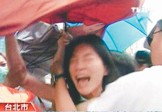 陳幸妤隨后開始狂喊“你們這樣天天跟,影響我的孩子!”旁邊的護衛(wèi)隊立即拿雨傘隔開她與記者,并拉著她繼續(xù)往前走,但她仍喊叫“你們真是夠了!”隨后又向護衛(wèi)隊高喊“不要勒我的脖子啦”,這時陳幸妤突然沖向一名攝影記者,右手還高舉過頭作勢打人,嚇得攝影記者不斷往后退。