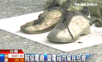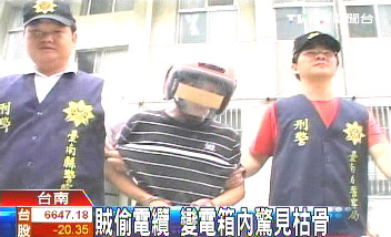 中國臺灣網(wǎng)7月3日消息 據(jù)臺灣TVBS電視臺報道,臺南縣一名小偷潛入歇業(yè)的工廠偷電纜,意外發(fā)現(xiàn)變電器箱里竟有一具白骨。據(jù)臺灣警察分析,死者可能是要偷電纜意外觸電,死亡時間超過2年;發(fā)現(xiàn)白骨的竊賊,也因?yàn)榱粼诂F(xiàn)場,通緝犯身份曝光,被帶回警局。