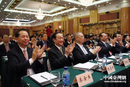 第五屆兩岸經(jīng)貿(mào)文化論壇專題報(bào)告7月11日上午在長(zhǎng)沙舉行,圖為中共中央臺(tái)辦主任王毅(前排左二)和中國(guó)國(guó)民黨副主席林豐正(前排左一)等出席。(中國(guó)臺(tái)灣網(wǎng) 鐘寶華 攝)