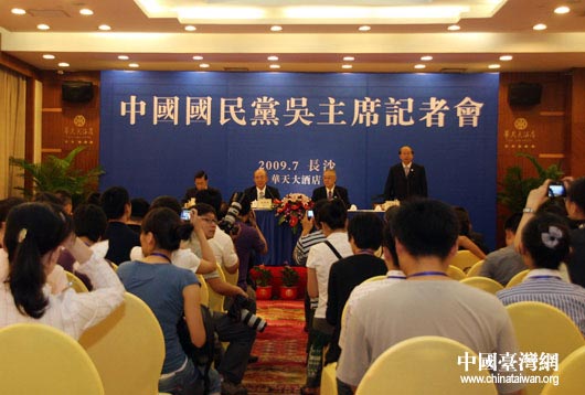 為期兩天的第五屆兩岸經(jīng)貿(mào)文化論壇今日下午在長沙落下帷幕,閉幕式結(jié)束后中國國民黨舉辦記者會,黨主席吳伯雄介紹參加此次論壇的情況,并回答記者提問。(中國臺灣網(wǎng) 鐘寶華 攝)