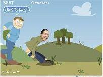 網(wǎng)友設(shè)計踢扁臀部的游戲,點(diǎn)擊扁身后的人物就會將腳踢向扁的屁股,而且扁還會往前飛出去,落地后還會評斷游戲者的踢人力道。(圖片來源:臺灣“今日新聞”)