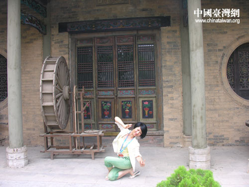 來自臺灣藝術(shù)大學舞蹈系的曾照熏教授,情不自禁的在一所古宅院里翩翩起舞,凝固的古老建筑藝術(shù)與來自寶島舞蹈藝術(shù)家飄逸的優(yōu)美舞姿,相映相輝,構(gòu)成一幅動人的圖畫。