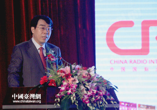 “移動(dòng)國(guó)際在線”今天在北京正式啟動(dòng),圖為國(guó)際廣播電臺(tái)臺(tái)長(zhǎng)王庚年在啟動(dòng)儀式上致辭。(中國(guó)臺(tái)灣網(wǎng) 張弛 攝)