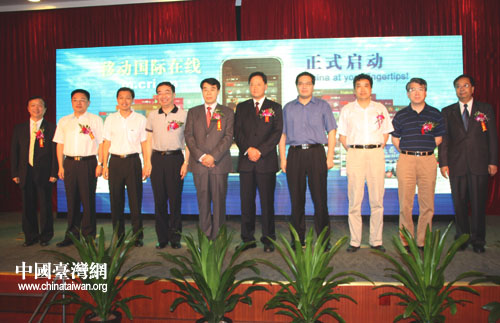 “移動(dòng)國(guó)際在線”今天在北京正式啟動(dòng),圖為出席啟動(dòng)儀式的部分嘉賓合影。(中國(guó)臺(tái)灣網(wǎng) 張弛 攝)
