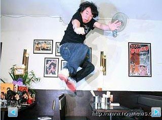 康康模仿李小龍在電影《精武門》最后一幕跳起定格的畫面。來源:臺灣《今日新聞》