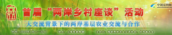 中國(guó)臺(tái)灣網(wǎng)7月20日上海消息 為順應(yīng)兩岸基層農(nóng)業(yè)交流與合作的需要,構(gòu)建惠及兩岸農(nóng)民利益的新平臺(tái)和新機(jī)制,海峽兩岸農(nóng)業(yè)交流協(xié)會(huì)與臺(tái)灣省農(nóng)會(huì)將于7月21至22日在上海朱家角鎮(zhèn)合作舉辦首屆“兩岸鄉(xiāng)村座談——大交流背景下兩岸基層農(nóng)業(yè)交流與合作”活動(dòng)。