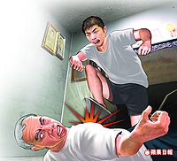 沈弘隆酒后向父親要錢不成,惱羞成怒將父親推倒在地,狠踹父親肚子十多腳。(來源:臺(tái)灣《蘋果日?qǐng)?bào)》)