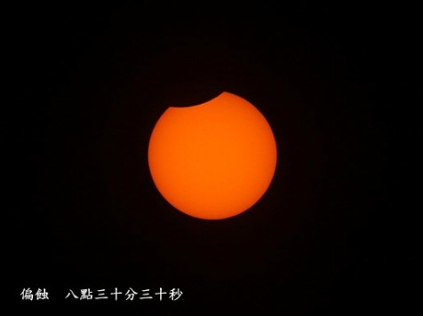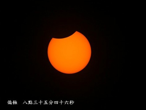 今天上午臺(tái)北艷陽高照,許多民眾相當(dāng)興奮,只是有時(shí)候太陽會(huì)被云層擋住,不過一下子又可以看到臺(tái)北日偏食的景象。(羅煜明)