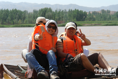 兩岸媒體記者乘坐羊皮筏子在黃河上漂流。(中國臺灣網(wǎng) 楊永青 攝)