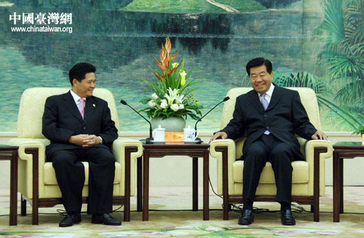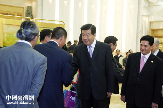 7月27日下午,中共中央政治局常委、全國政協(xié)主席賈慶林在北京人民大會堂會見了以鄭銘坤先生為團(tuán)長的臺灣媽祖聯(lián)誼會代表團(tuán)一行 。(中國臺灣網(wǎng) 鐘寶華 攝)