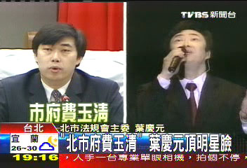 臺(tái)北市府版“費(fèi)玉清”葉慶元(圖左)。圖片來(lái)源:臺(tái)灣TVBS電視臺(tái)