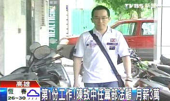 據(jù)臺灣TVBS電視臺報道,穿著輕便走進(jìn)民進(jìn)黨高雄市黨部的陳致中,從8月開始就要領(lǐng)薪水,擔(dān)任黨部的法律咨詢顧問,這也是他從學(xué)校畢業(yè)之后,第一份有薪水的工作。