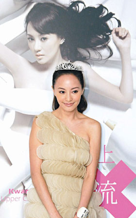 關(guān)穎的新書記者會(huì),身后照片突破入行以來拍攝最大尺度。圖片來源:臺(tái)灣《聯(lián)合報(bào)》