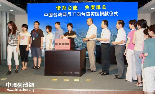 中國(guó)臺(tái)灣網(wǎng)8月20日北京消息 20日下午,中國(guó)臺(tái)灣網(wǎng)全體員工舉行捐款活動(dòng),向臺(tái)灣災(zāi)區(qū)同胞奉獻(xiàn)一片愛(ài)心。