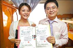上演驚喜求婚記的林純永,最后獲得女友陳喬媚首肯,一起展示兩人簽下的“愛情聘書”。