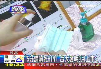 臺(tái)大研發(fā)團(tuán)隊(duì)發(fā)明的號(hào)稱能殺死甲型H1N1流感病毒的噴劑。(來源:臺(tái)灣TVBS電視臺(tái))