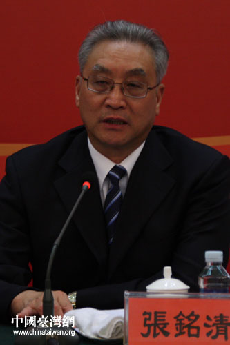 海峽兩岸農(nóng)業(yè)融合升級合作懇談會今天下午在濰坊舉行,海協(xié)會副會長張銘清出席。(中國臺灣網(wǎng) 張弛 攝)
